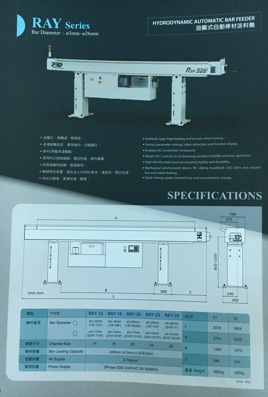 Hydrodynamic Automatic Bar Feeder
